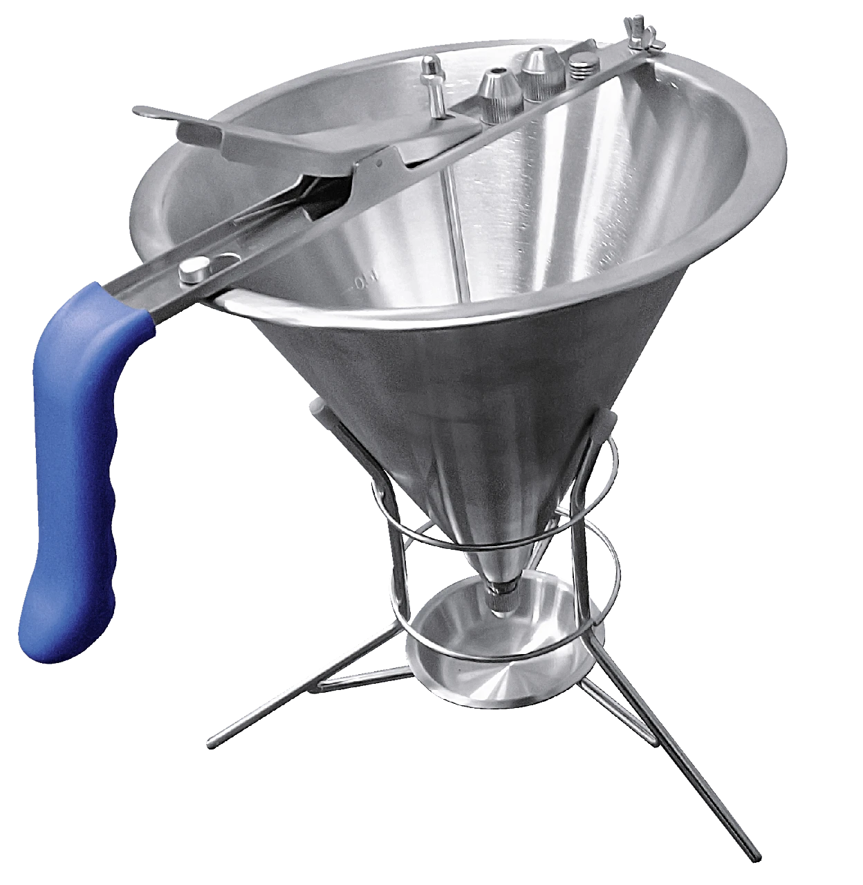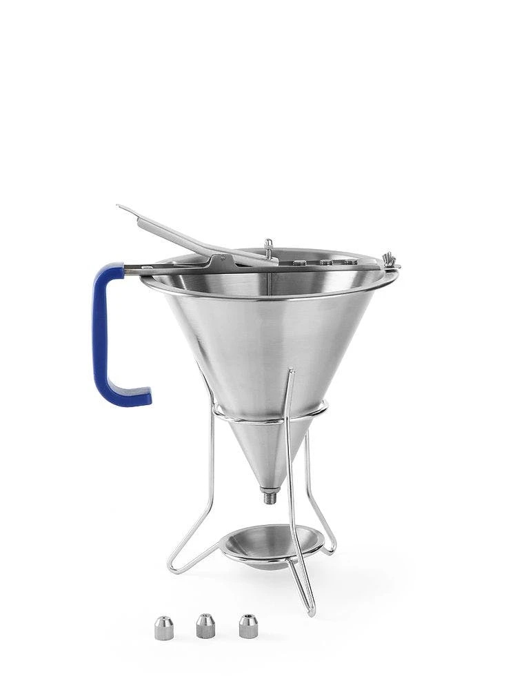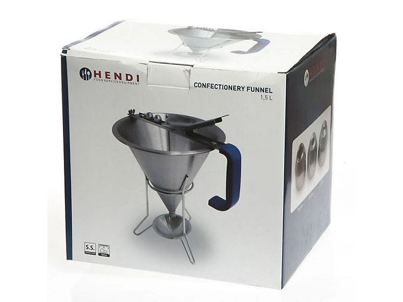 Dieser Hendi Tortendekorationstrichter misst Ø 19 x 22 cm (Ø x H) und ist aus Edelstahl mit einem ergonomischen ABS-Polypropylen-Griff gefertigt. Das Absperrventil sorgt für eine tropffreie Abdichtung im geschlossenen Zustand. Mit drei verschiedenen Düsengrößen von ⌀ 2, 4 und 6 mm. Drahtablage und Tropfschale inklusive. Der Trichter ist ideal zum Verteilen von Saucen und zum Dekorieren von Speisen und Desserts.