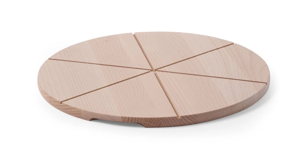 Aus Buchenholz. Mit Rillen zum Schneiden von 6 gleichgroßen Stücken.